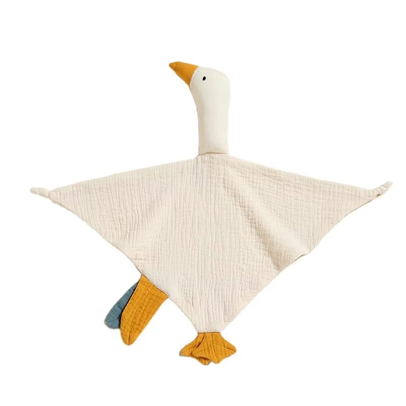 Roztomilá huska, ktorá ochráni sladké sny! Mojkáč v tvare husky je ušitý z jemného bavlneného mušelínu, ktorý je príjemný na dotyk a šetrný k citlivej detskej pokožke. Dlhý krk a krídelká sú ideálne na chytanie malými rúčkami, pričom rozvíjajú jemnú motoriku. Vďaka mäkkej hlavičke s výplňou a plochému telíčku si ju bábätko môže pri spánku bezpečne mojkať.