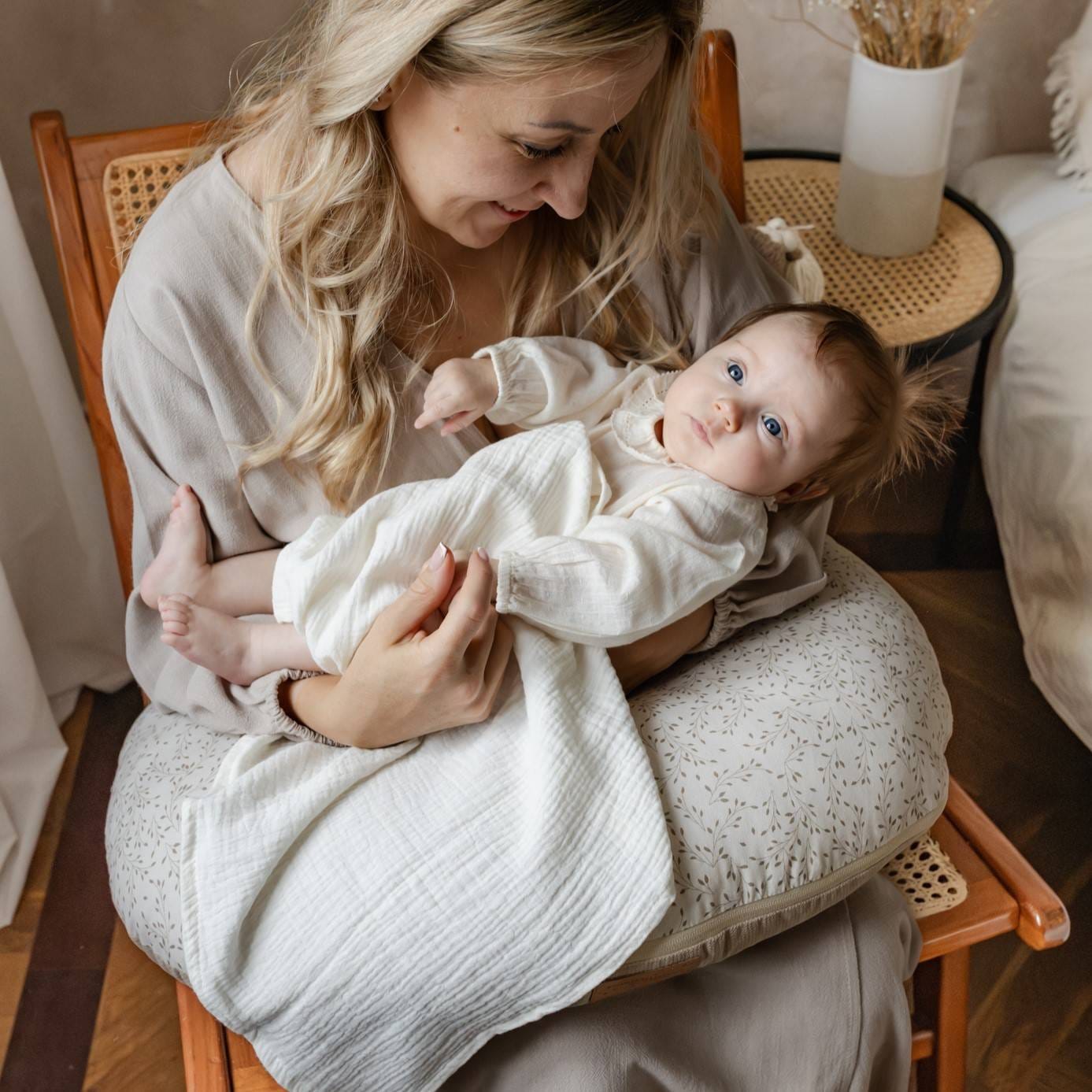 - Naše plienky sú vyrobené z najkvalitnejšieho, mäkkého 100 % bavlneného mušelínu, ktorý poskytuje jemný a prirodzený pocit pre mimoriadne citlivú pokožku novorodencov už od prvého dňa.